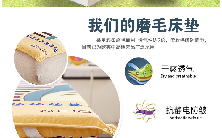 秋冬加厚防滑床垫 法莱绒海绵床垫批发 保暖床褥 单双人床垫 代发