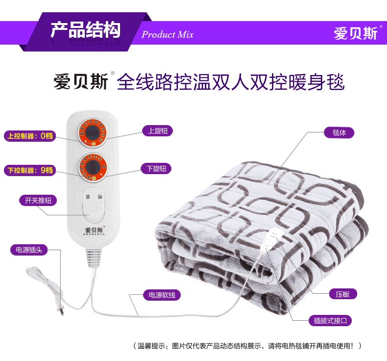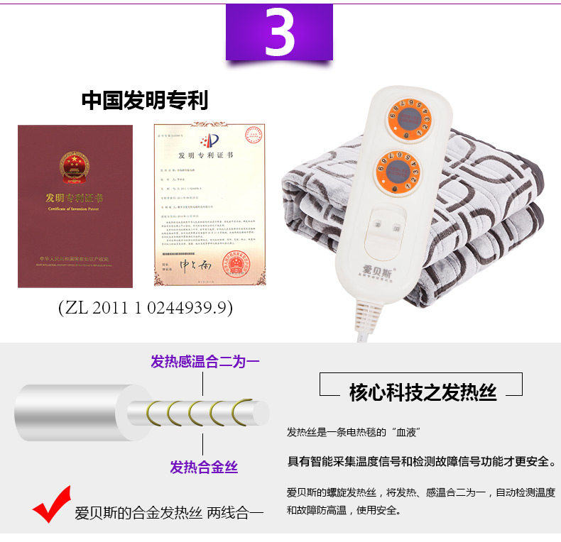 供应加大加厚蒲公英电热毯全保护型双人电热毯 优质电褥子批发