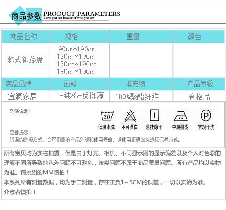 | 尺寸规格 | 150*200 | 面料次成分 | 御藤席 |