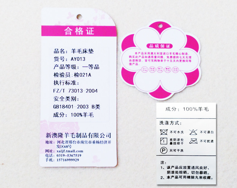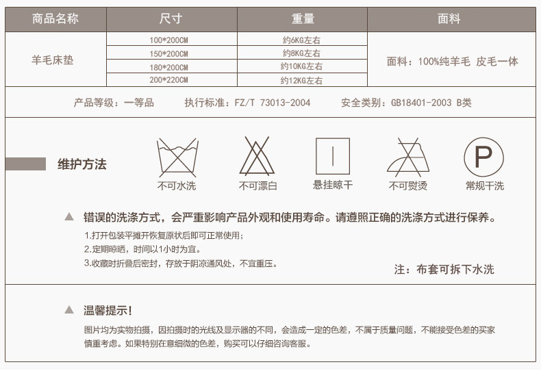 | 填充物次成分 | 羊毛 | 填充物次成分含量 | 100 |