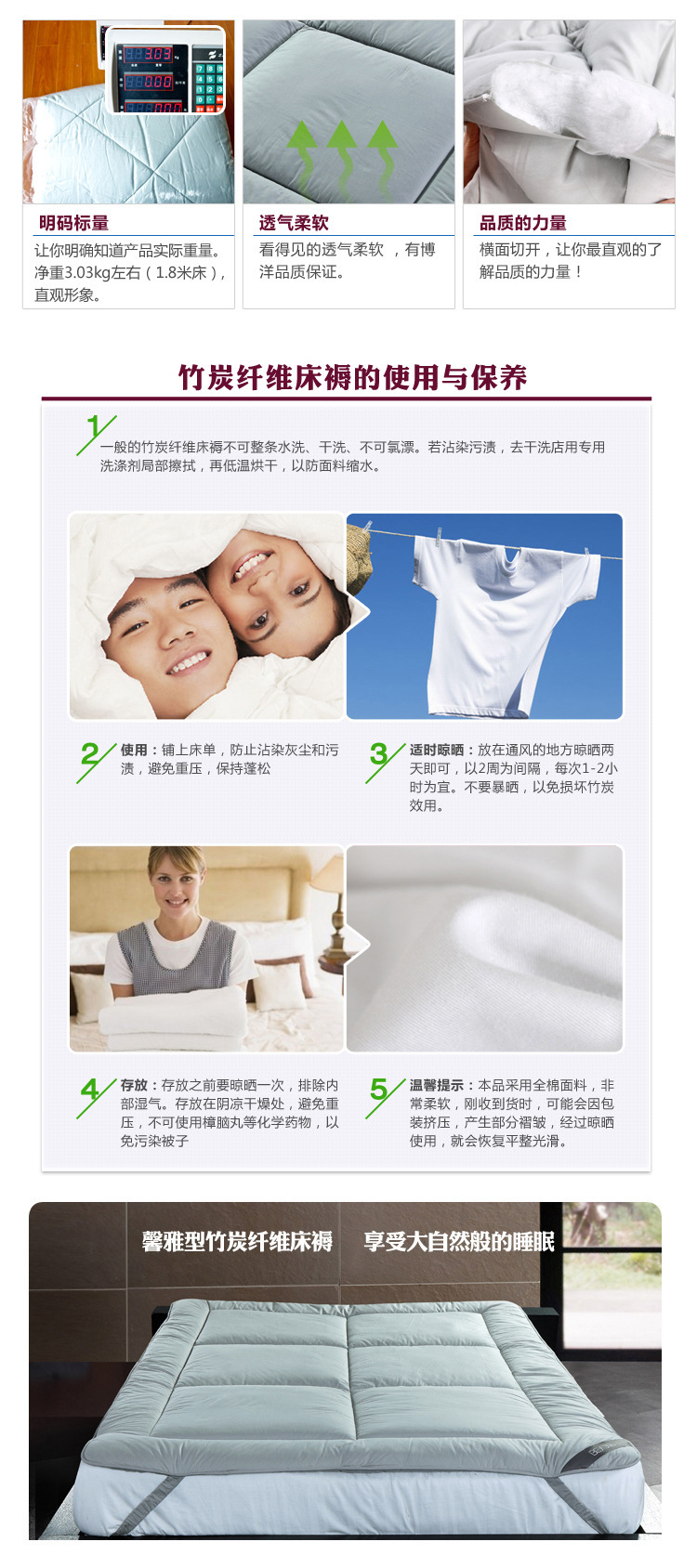 | 商 品 名 称 | 馨雅型竹炭纤维床褥 | |||